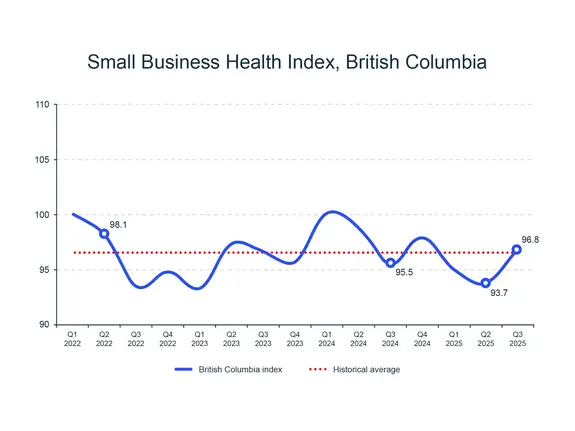 The index in British Columbia reached 96.8 in Q3 2025, the lowest among all regions, but still 3.3% higher than the previous quarter and 1.4% above the same quarter last year.