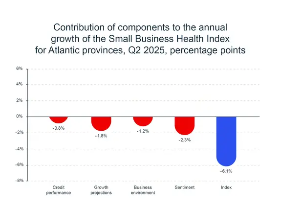 The decline was largely driven by weaker growth projections and deteriorating business sentiment. In Q2, only 8% of businesses in the Atlantic provinces planned to increase investment spending, while 68% expected economic conditions to worsen over the following 12 months.