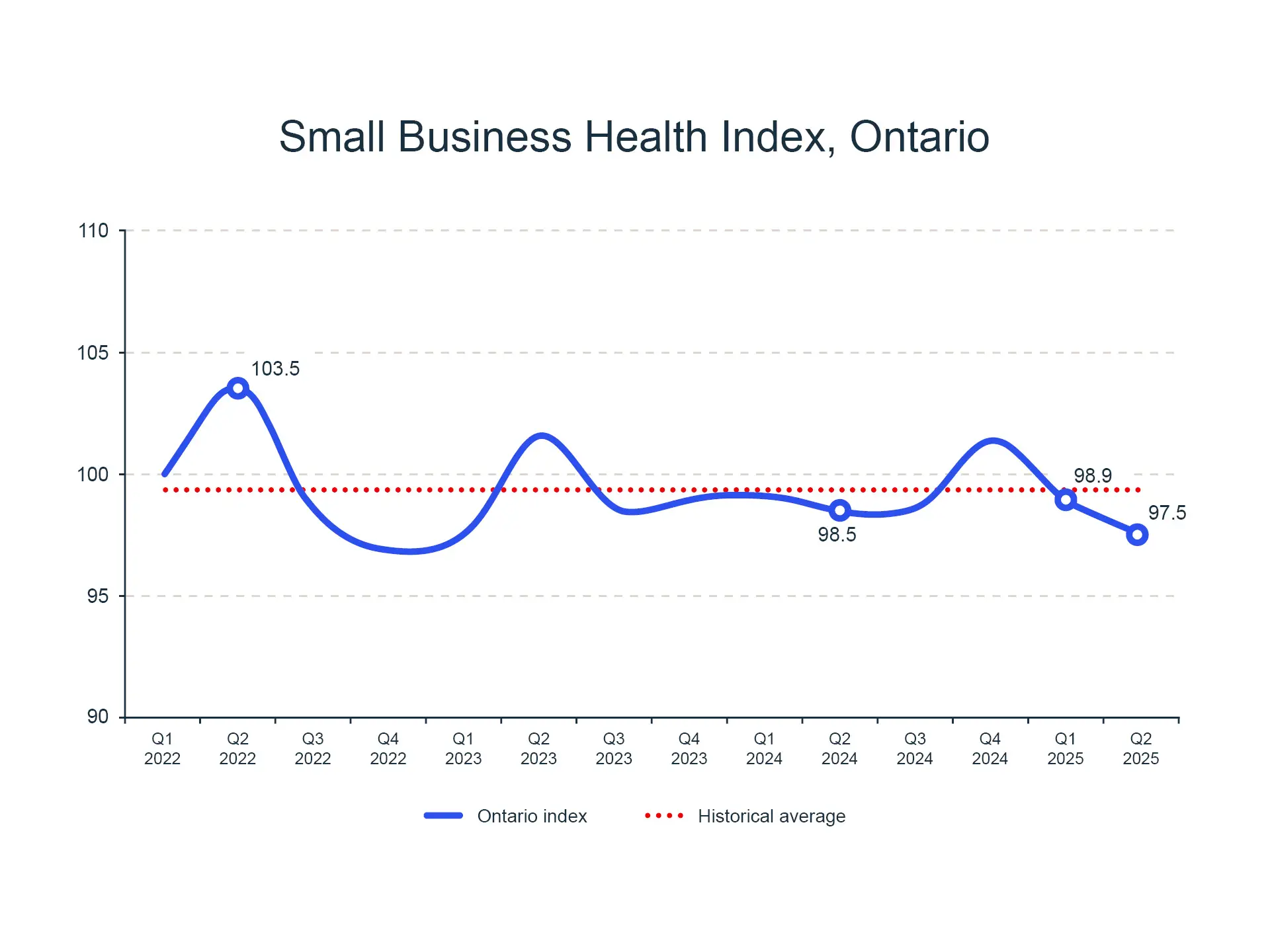 Ontario’s index came in at 97.5 in Q2 2025, a 1.5% drop from Q1 2025 and 1.0% from the same time last year.