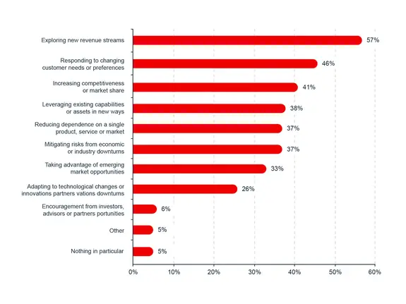 In response to a question about what drove their most recent diversification initiative, 57% of business owners reported that they wanted to explore new revenue streams.