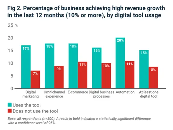85% of companies that achieved high revenue growth (over 10%) in the previous year used at least one digital technology.
