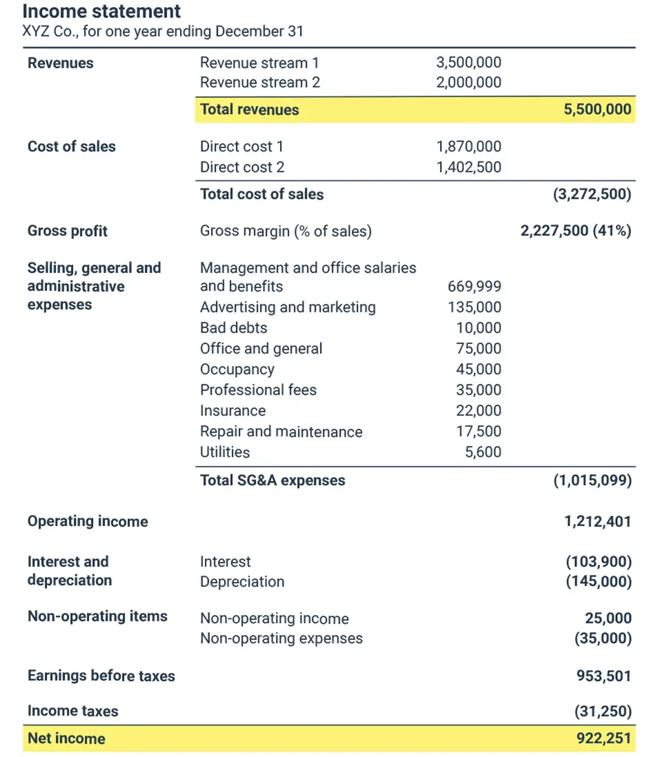 Where to find the elements of the net profit margin on the income statement