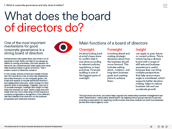 Discover the basic concepts of corporate governance and the importance of assembling a board of directors with the skills and experience to guide a business wisely.
