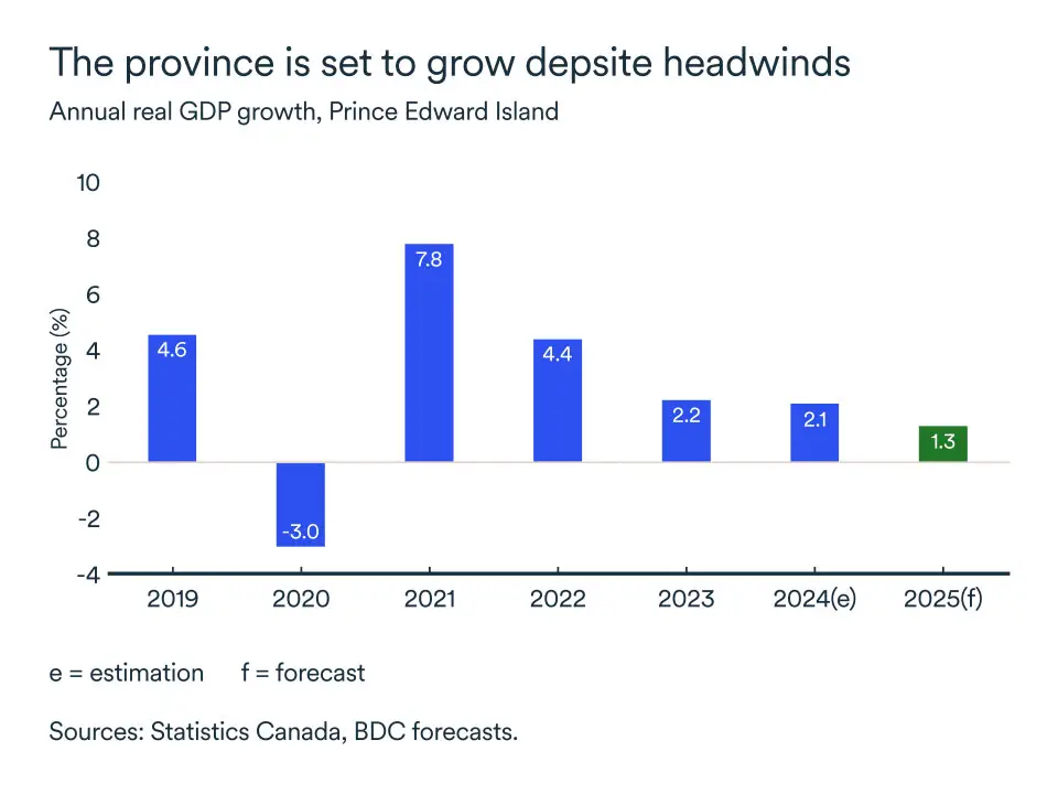 Prince Edward Island's economy began 2025 on a solid footing, thanks to strong growth in 2024. However, the province is encountering challenges from local factors. Population growth is expected to slow this year and there have been no announcements of significant new investment projects.