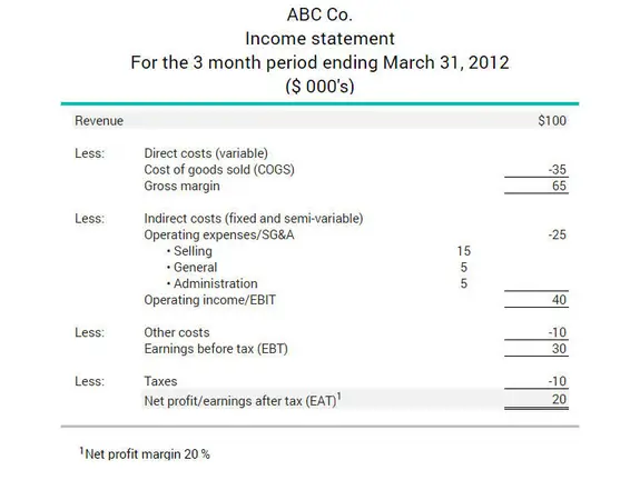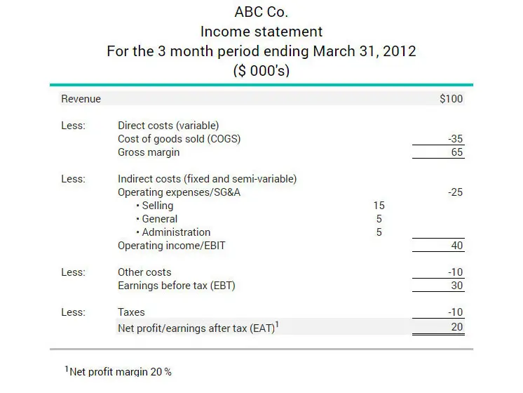 From the income statement below, ABC Co.’s earnings after taxes are $20,000 and its net revenue is $100,000. The net profit margin ratio is calculated as follows: