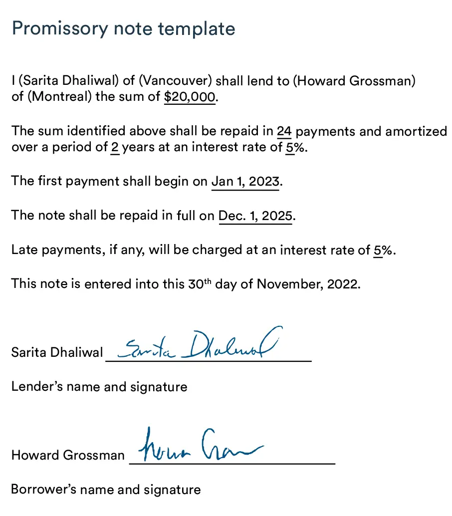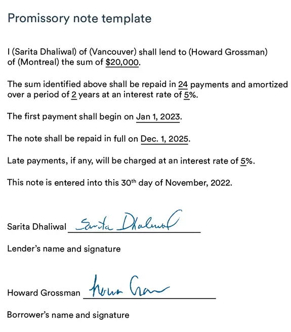 “Basically, a promissory note is a promise to pay back money. It is probably the simplest representation of a debt. All you need to document on paper is who is lending to whom, the amount, the date of the transaction and when it should be paid back, and both signatures—that’s it!” says Nicolas Fontaine, Senior Business Advisor, BDC Advisory Services.