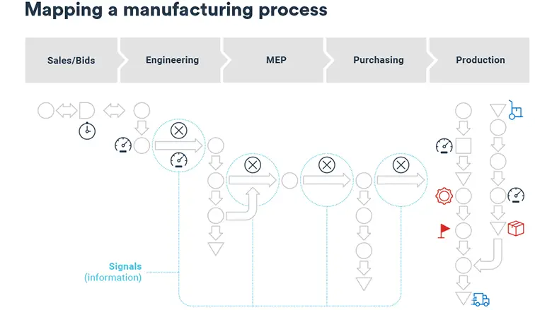 “To take it further, activities are mapped sequentially, from order intake to invoicing,” Frenière says.