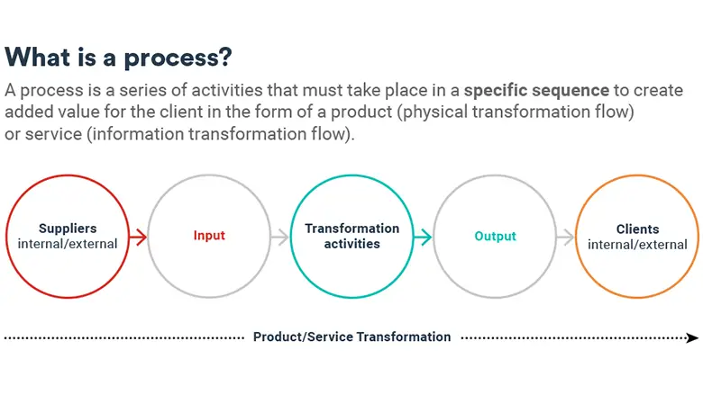 “Doing this exercise often quickly reveals dysfunction,” Frenière says. “For example, if a process does not create an output at the end that has added value for the client.”
