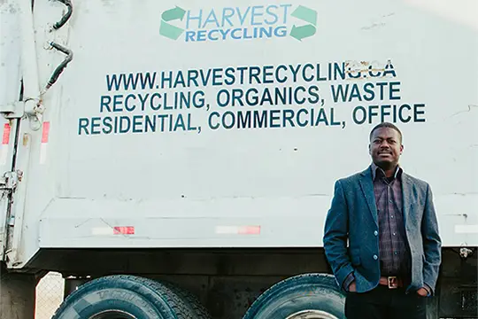 In 2010, Olorundimu started what was then a part-time business, Harvest Recycling. He began modestly with only himself and one truck, and he worked evenings and weekends while holding down a full-time job in the computer industry.