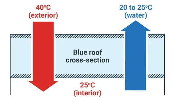 A blue roof acts as an insulation barrier that moderates temperatures inside the building. That can reduce your air conditioning and heating use and increase the service life of those systems.