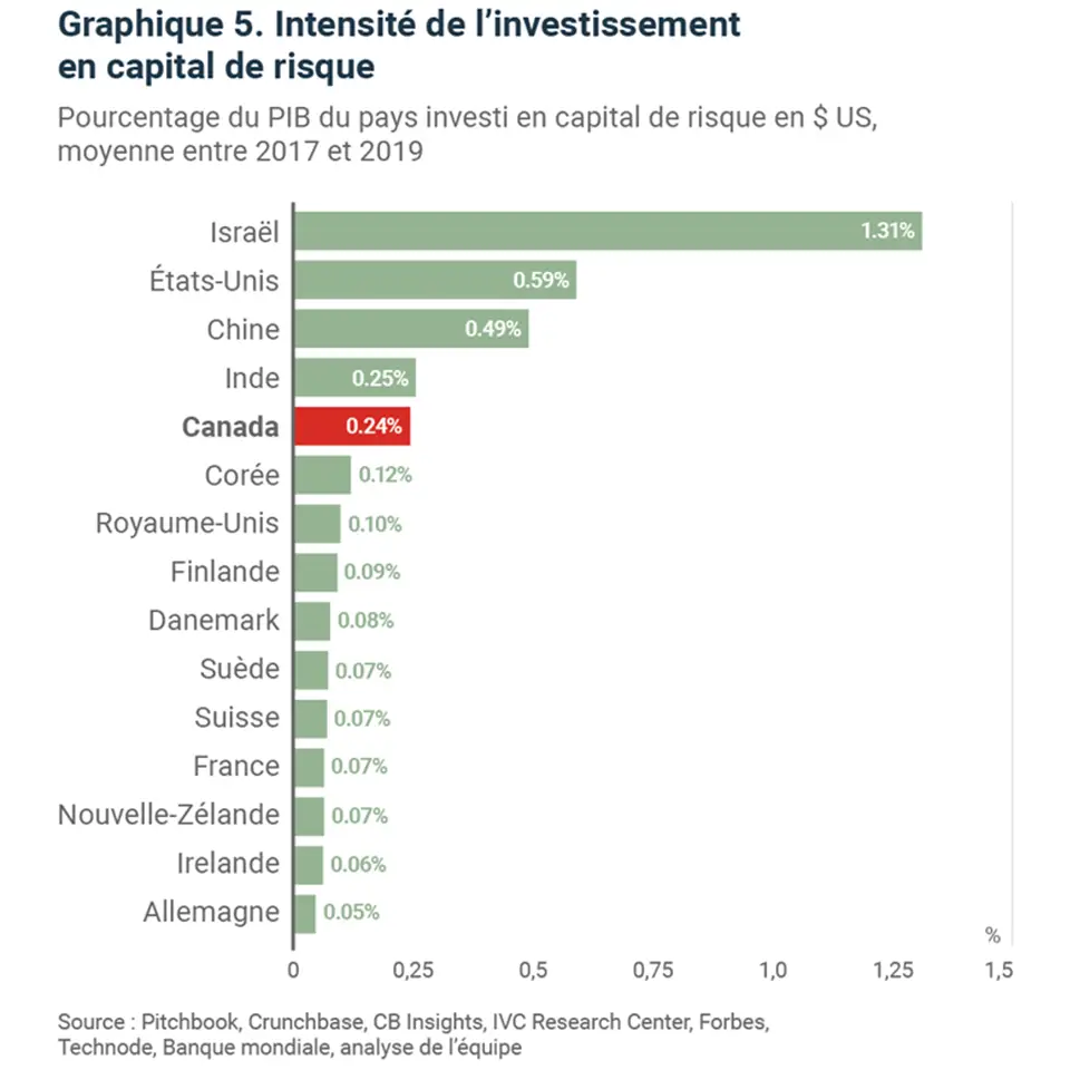 En fait, le Canada a maintenant l’un des meilleurs écosystèmes au monde pour ce qui est de l’importance des investissements en capital de risque (graphique 5).