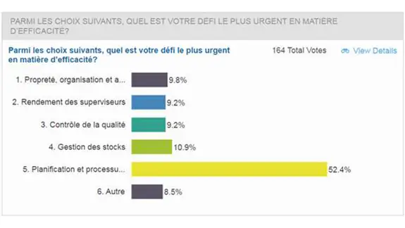 En novembre 2016, BDC a tenu un webinaire en direct à l’échelle nationale, au cours duquel on a demandé aux participantes et participants quel était leur défi le plus urgent en matière d’efficacité. L’organisation du lieu de travail constituait le défi le plus urgent pour 9,8 % des propriétaires d’entreprise qui ont participé.