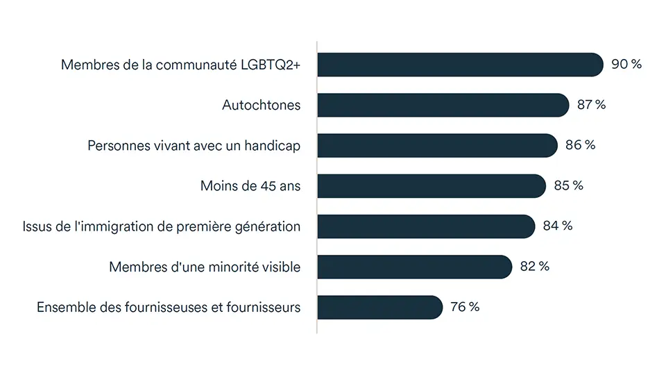 Cela est particulièrement vrai chez les propriétaires d’entreprises issus de la diversité. Les membres de la communauté LGBTQ2+, les personnes vivant avec un handicap, les personnes de moins de 45 ans, les membres d’une minorité visible, les personnes issues de l’immigration et les Autochtones sont plus susceptibles de dire que l’adoption de pratiques ESG sera avantageuse pour leur entreprise.