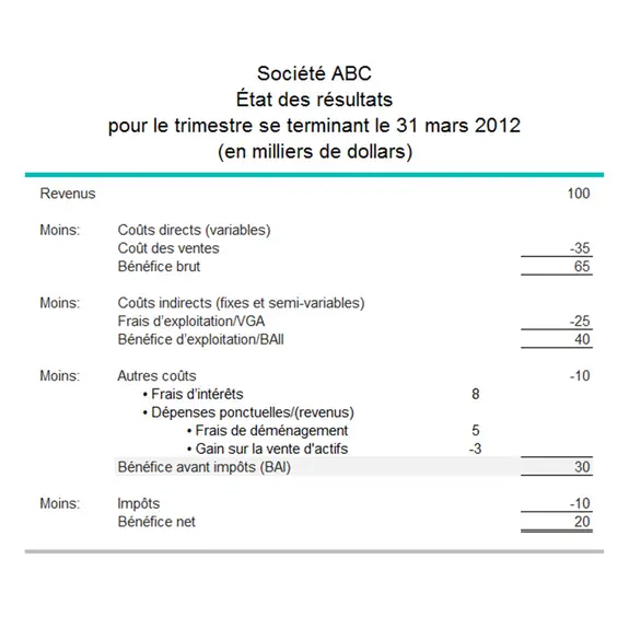 L’état des résultats ci-dessous démontre le bénéfice avant impôts d’une entreprise de gros cumulant des revenus de 100 000 $.