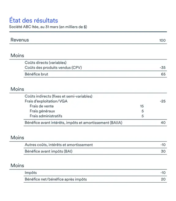 Comme les VGA ne sont pas considérés comme faisant partie du coût des produits vendus (CPV), ils sont inscrits entre le CPV et le poste intérêts et dépréciation dans l’état des résultats.