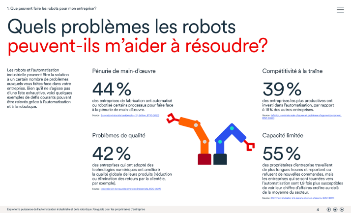 Découvrez comment intégrer la robotique peut rendre votre entreprise plus productive, plus compétitive et vous aider à faire face à la pénurie de main-d'œuvre.
