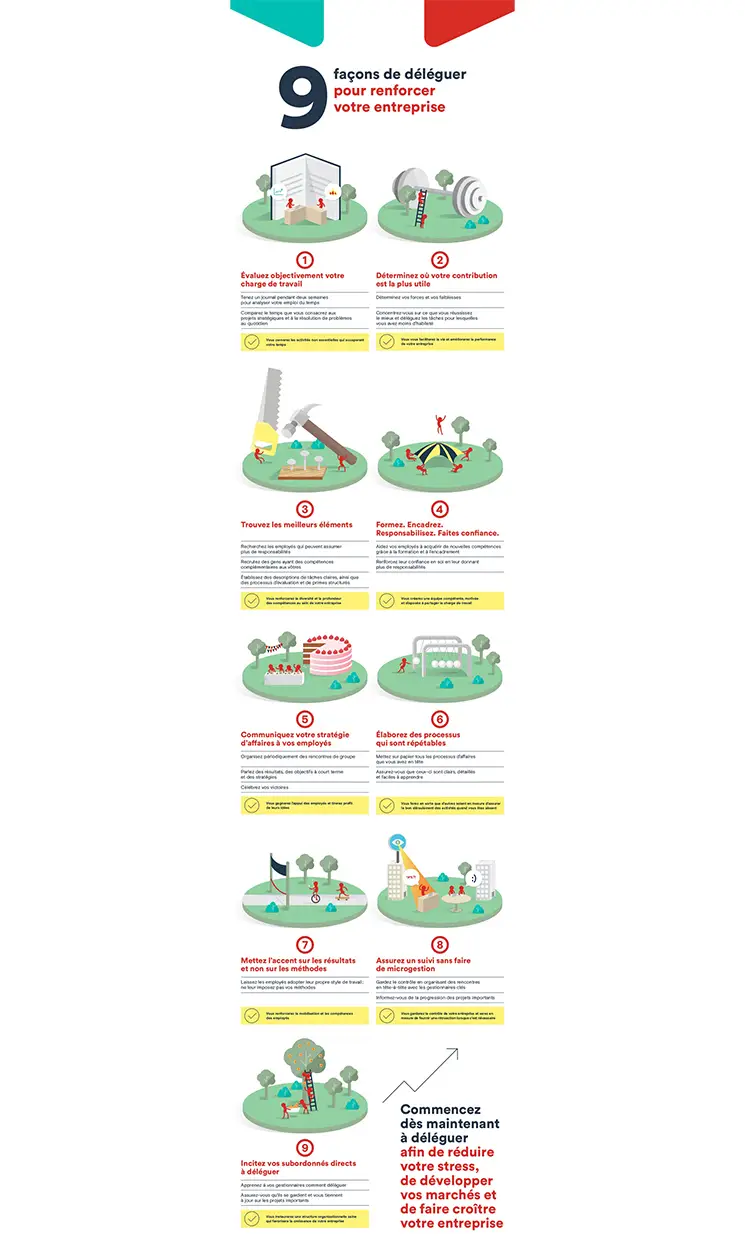 Pour beaucoup de propriétaires et de gestionnaires, le fait de ne pas déléguer suffisamment de tâches est un obstacle qui provoque du stress tant sur le plan personnel que professionnel en plus d’entraver la croissance de leur entreprise.