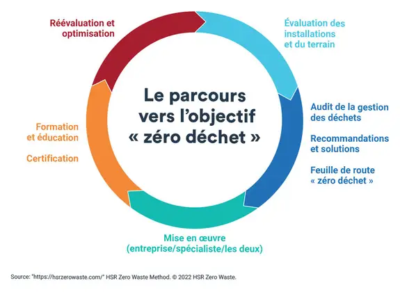 M. Kaminski suggère un processus en quatre étapes pour aider les entreprises à réduire leurs volumes de déchets. Les entreprises peuvent suivre ces étapes par elles-mêmes ou embaucher des spécialistes externes en gestion des déchets. M. Kaminski recommande de trouver quelqu’un qui se spécialise dans l’élimination totale des déchets (zéro déchet), une approche qui vise à réduire les déchets à des niveaux proches de zéro.